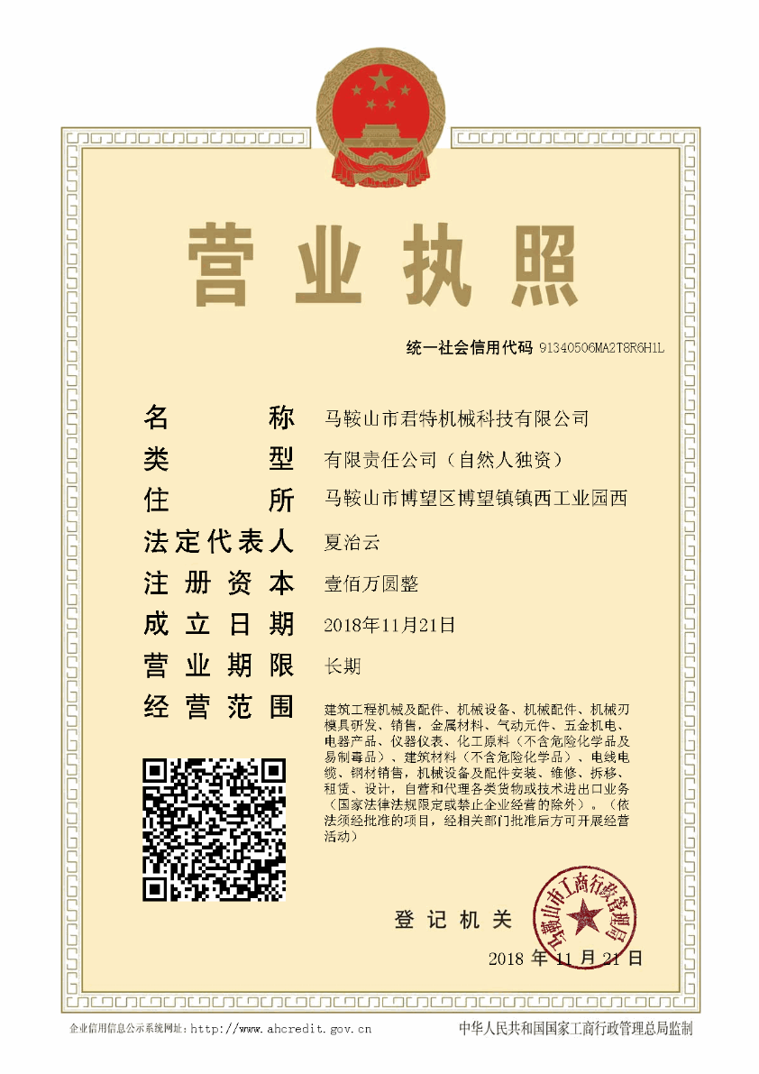 馬鞍山市君特機(jī)械科技有限公司位于蘇皖兩省交界地,距南京祿口機(jī)場(chǎng)23公里的博望經(jīng)濟(jì)開(kāi)發(fā)區(qū)內(nèi)。其產(chǎn)品銷(xiāo)售遍布各地,公司以其先進(jìn)的技術(shù),優(yōu)良的產(chǎn)品質(zhì)量和周到的客戶(hù)服務(wù)...