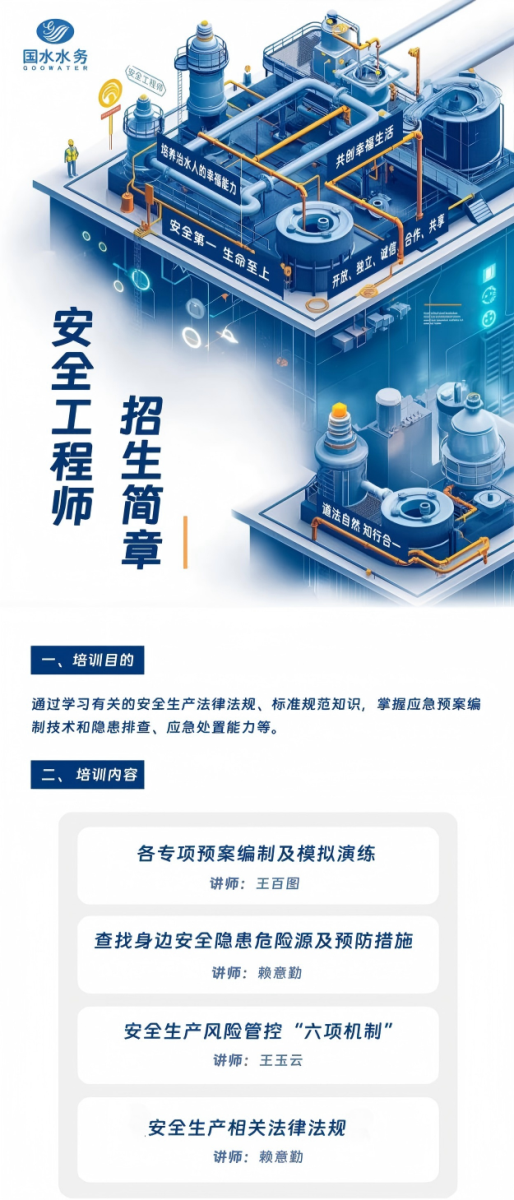 通過此次行動(dòng),國(guó)水水務(wù)將培育首批8名安全工程師,內(nèi)部安全管理制度優(yōu)化升級(jí) 3 項(xiàng),今后仍將持續(xù)深入開展安全技術(shù)專業(yè)領(lǐng)域基礎(chǔ)培訓(xùn),引進(jìn)具備應(yīng)急管理、應(yīng)急技術(shù)與管理、安全工程等專業(yè)人才,推進(jìn)安全工程師執(zhí)業(yè)資格注冊(cè)制,與應(yīng)急管理行業(yè)接軌,真正實(shí)現(xiàn) “人才專業(yè)、管理規(guī)范、實(shí)戰(zhàn)過硬”—— 這既是國(guó)水水務(wù)自身的安全底氣,更是服務(wù)客戶的 “經(jīng)驗(yàn)樣本”。